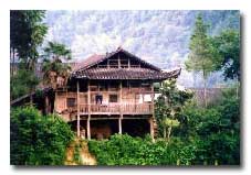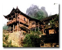 吊脚楼,是土家人所喜爱的住宅。它一头立在平坝上,和侧面的厢房连接;一头吊在坎下,自成两层楼房。上层住人,下层设牲畜栏圈。上层的三方大都有栏杆、扶手、阳台,敞亮干净,既可在里面挑花绣朵,读书写字,又可晾晒衣被。在土家族,关于吊脚楼的传说也很多。 相传很早的时候,湘西一带的土家人搭起一些茅草屋居住,砍草犁地,在烧荒之后的土地上种庄稼。这一带古木参天,荒山老林里有很多虎豹豺狼,蛇和蜈蚣到处爬。由于人们惧 怕野兽,就烧起大火,还在火堆里埋竹节燃烧,野牲口看到明晃晃的大火,吓得不敢靠近,然而蛇虫蚂蚁却不是很在乎这些,常往屋里钻。有个老年人想出一个主意,他喊一些后生砍树条子,像扎木排一样,在草棚子旁边的树上绑起架子,铺上野竹子和细树条,再垫一层树叶和茅草,顶上支起茅草顶篷躲雨水。人睡在树半腰上,蛇虫蚂蚁就不大容易爬上去。但是,放在地上的食物被虫子爬过后,人吃了又呕又泻。这个老年人又想了个办法,叫后生把一块块大岩板拉上树,放平,再垫上一层黄泥,然后在上面支锅弄饭,这样粮食就不会让虫子爬了。 老年人的办法很快从一个地方传到另一个地方,人们都照这个办法去做,在大树半腰间搭起大大小小的茅草棚,住在上面,脚是吊在半空的,民间就叫它为“吊脚楼”。