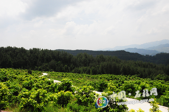 ??? 本网讯(记者 隆太良 文/图)沿坡而建的果林一望无垠,密密麻麻的小柚子缀满枝头,这是日前记者在三河镇永和村九谷湾组三红蜜柚基地看到的产业发展情景。