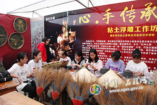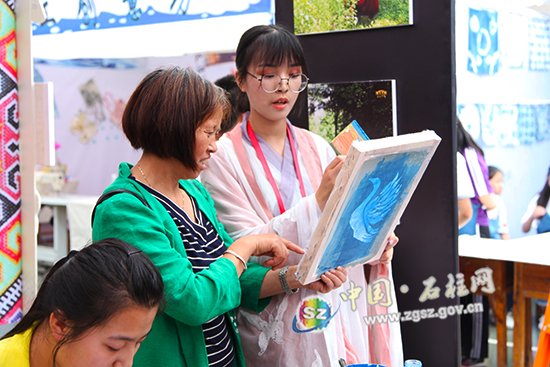 ????最引人注目的地方莫过于学生艺术实践工作坊。陶艺、版画、剪纸、篆刻、纸艺、钉子画等20多个展区精彩纷呈、各有千秋、独具特色。“好开心,我一直都对汉服文化感兴趣,但是从来没有机会接触。今天我亲手做了一个模型,也就满足啦。”一位同学拿着刚做完的汉服模型,喜笑颜开地说道。石柱中学的美术社艺术工作坊以“古画中的汉服”为主题,吸引很多同学都来亲身体验汉服文化,感受传统文化之美。
