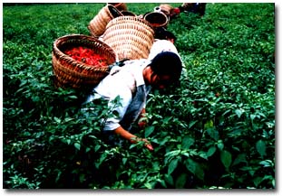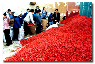 为发展农村经济,增加农民收入,县委县政府立足自身资源优势,选择具有地域特色和良好市场前景的"小辣椒"作为我县农业产业发展的重点。通过不懈努力,已建成川渝最大的辣椒生产县,成为在全国有较强竞争力的特色 "大产业"。 石柱县辣椒早在上个世纪五十年代就已出口韩国、斯里兰卡等国家。2000年县委、县政府把辣椒产业作为一项重点产业来发展,从山东、贵州引种,在三益试种500亩并喜获丰收。历时4年,面积从500亩倍速增加到2005年的13万亩,2010年将达到20万亩;乡镇由1个逐步扩大至2005年的16个;专业合作经济组织从1个逐渐健全壮大到2005年的20个,并注册了国内首枚以辣椒为名的"三益"牌商标。这样一个从小到多,由点到面,从试验示范到大规模种植,从农家餐桌上一碟小菜成为覆盖大半个县的新兴产业,正在石柱蓬勃发展。 辣椒属于茄科辣椒属蔬菜,以果实作为食用,辣椒中维生素丙的含量在蔬菜中居第一位,果皮和胎座中含有挥发性的辣椒素,有辣味,能增进食欲。辣椒是喜温作物,不耐霜冻。本地不但可以在春季种植,而且秋季也可种植。我们种植辣椒,绝大多数是采收青果,一般也称作青椒生产。 无公害辣椒生产技术规程: